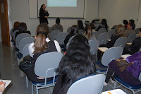 Professora Renata Cristina ministra curso de Técnicas de Negociação. A maioria do público atua no mercado de trabalho. |
